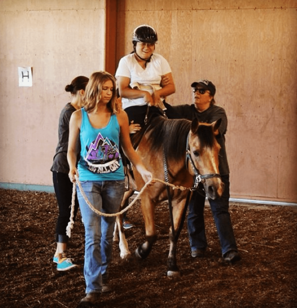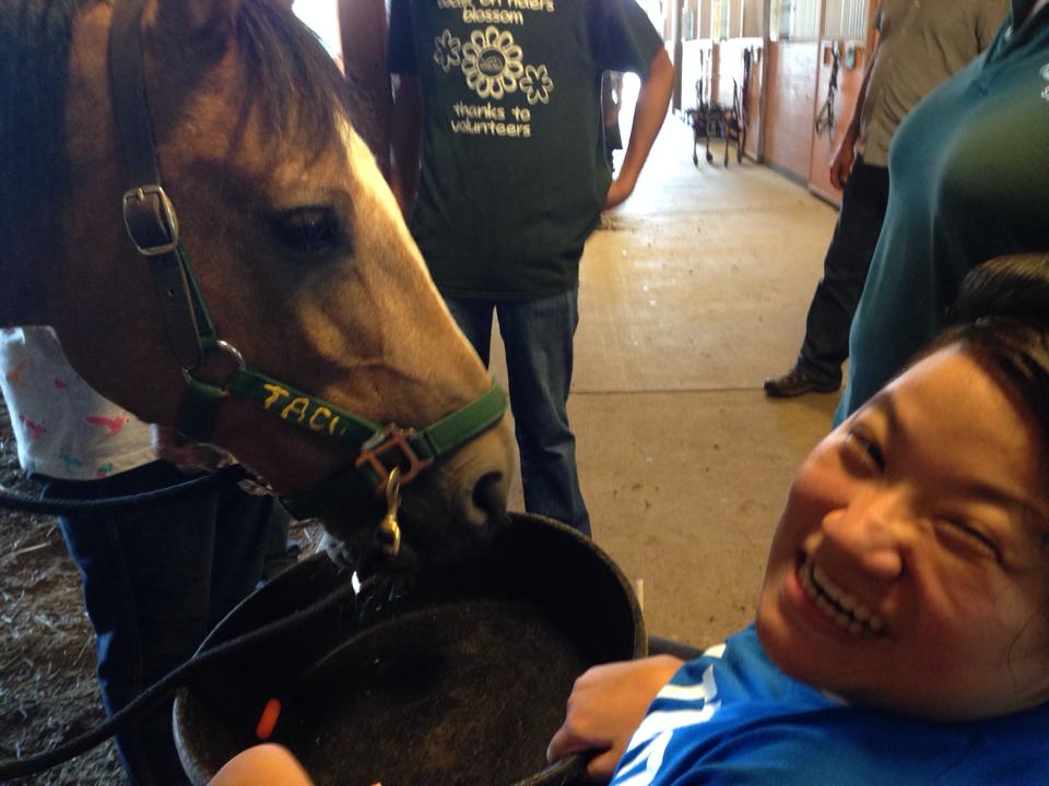 Esther took adaptive horseback riding lessons at Walk on Farm. She went on Tuesdays and her horse was named Taco so we called it “Taco Tuesdays.” Horseback riding helped alleviate some of her chronic pain. Mary, the director, used to tell us that horseback riding mimics the act of walking, which Esther was unable to do on her own. She also enjoyed the social aspect of talking with Mary and the volunteers and feeding Taco carrots after lessons.
